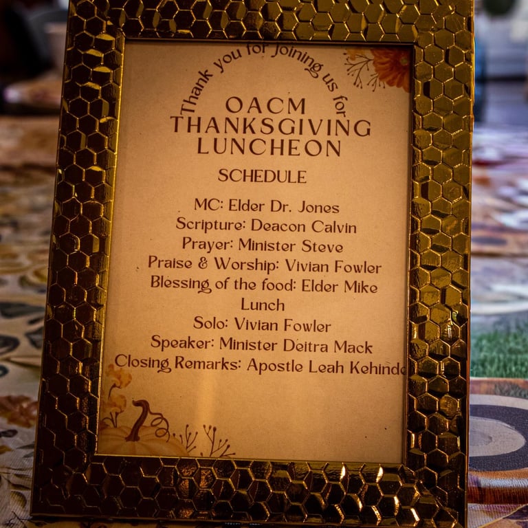 For more information, see Minister Earl in person or email oacm1@outlook.com or call 980-331-1396